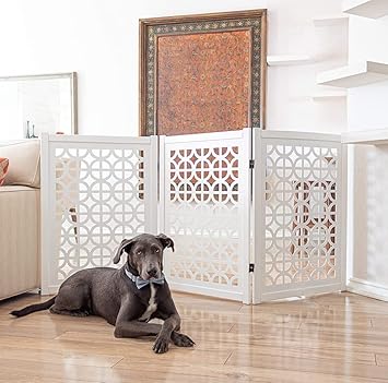 - FOLDING AND EXPANDABLE DESIGN: This Pet Dog Fence is Free Standing and Can be Folded Out into the Wide Z-Shape Allows You to Use It in Full Hallways, Double Doors, Or Standard Doorways, Bedrooms, Staircases or Any Place in Your House.