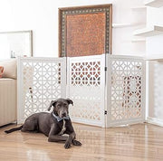 - SIMPLE & STURDY: This Convertible Wooden Dog Gate is a Pet Fence, Room Divider, and Pet Pen All In One. Designed with an Attractive Wood Finish and Sturdy Non-Slip Wooden Feet, The Pet Gate.