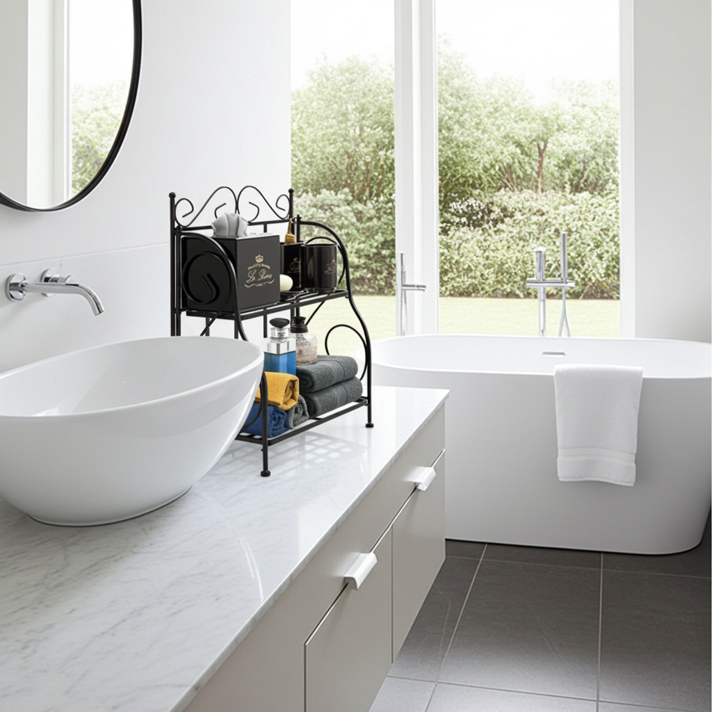 - kitchen spice rack saves space and frees up counter space for cooking and baking. Also good for organizing cosmetics and toiletries in the bathroom